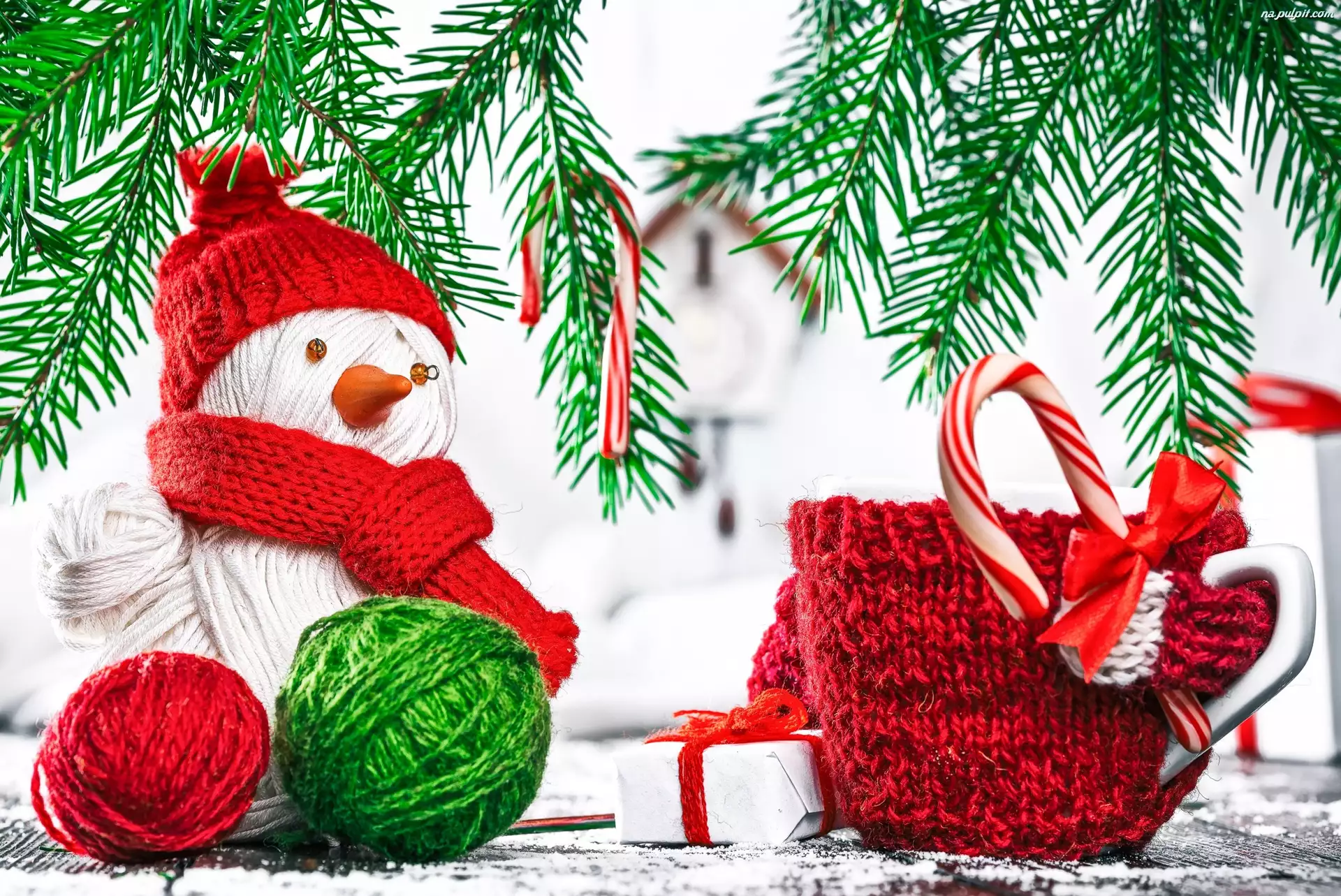 Gałązki, Bałwanek, Prezent, Świąteczna, Kubek, Lizaki, Dekoracja, Włóczka