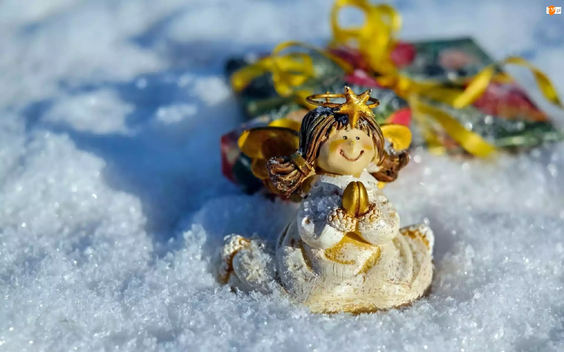 Dekoracja, Zima, Figurka, Śnieg, Aniołek