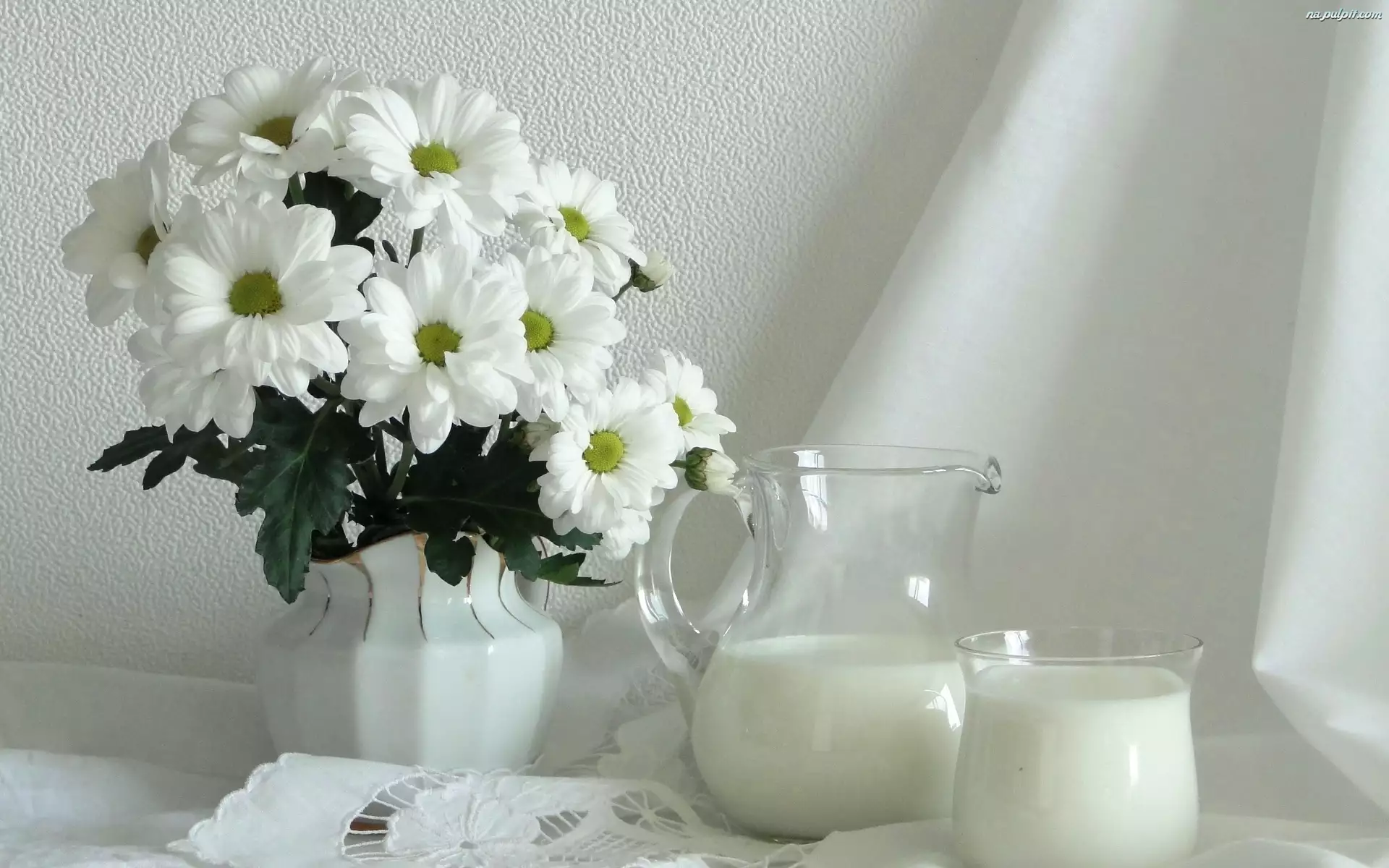 Bukiet, Mleko, Dzbanek, Serwetka, Biały, Kwiatów
