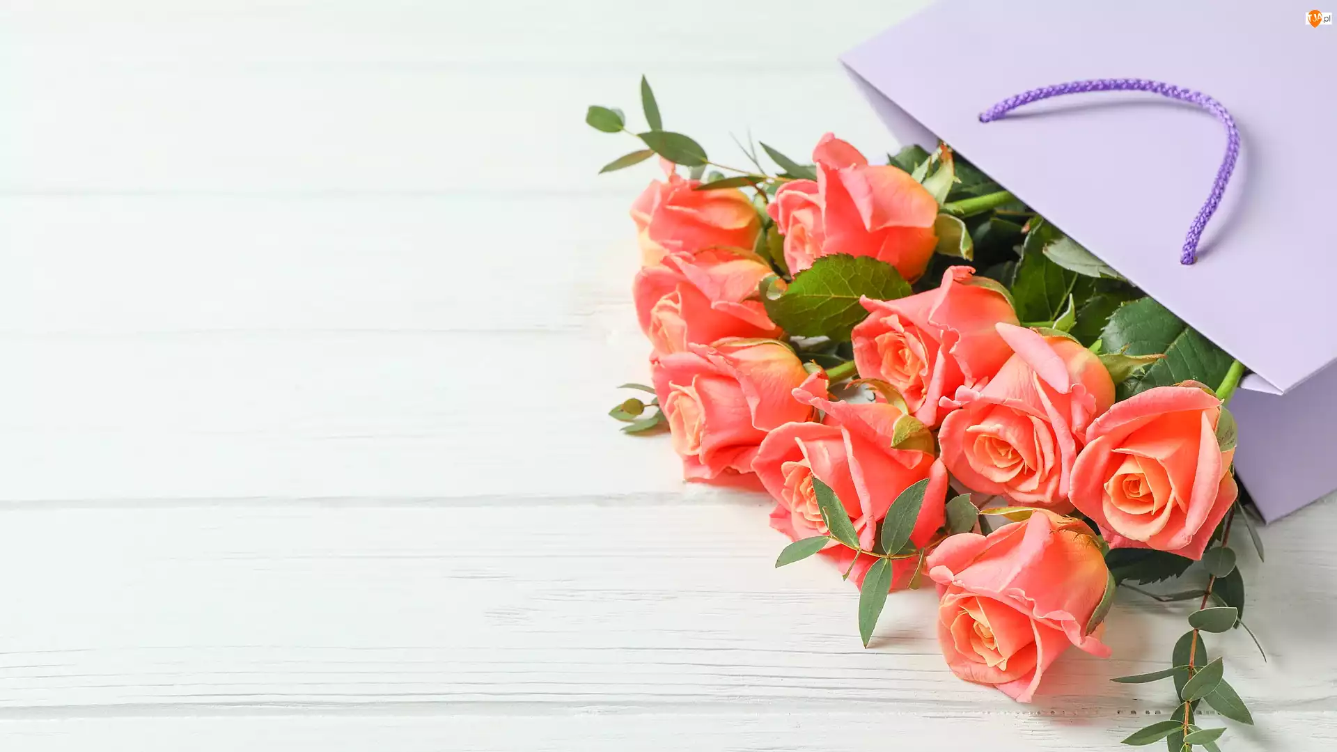 Róże, Kwiaty, Papierowa, Deski, Liliowa, Torebka