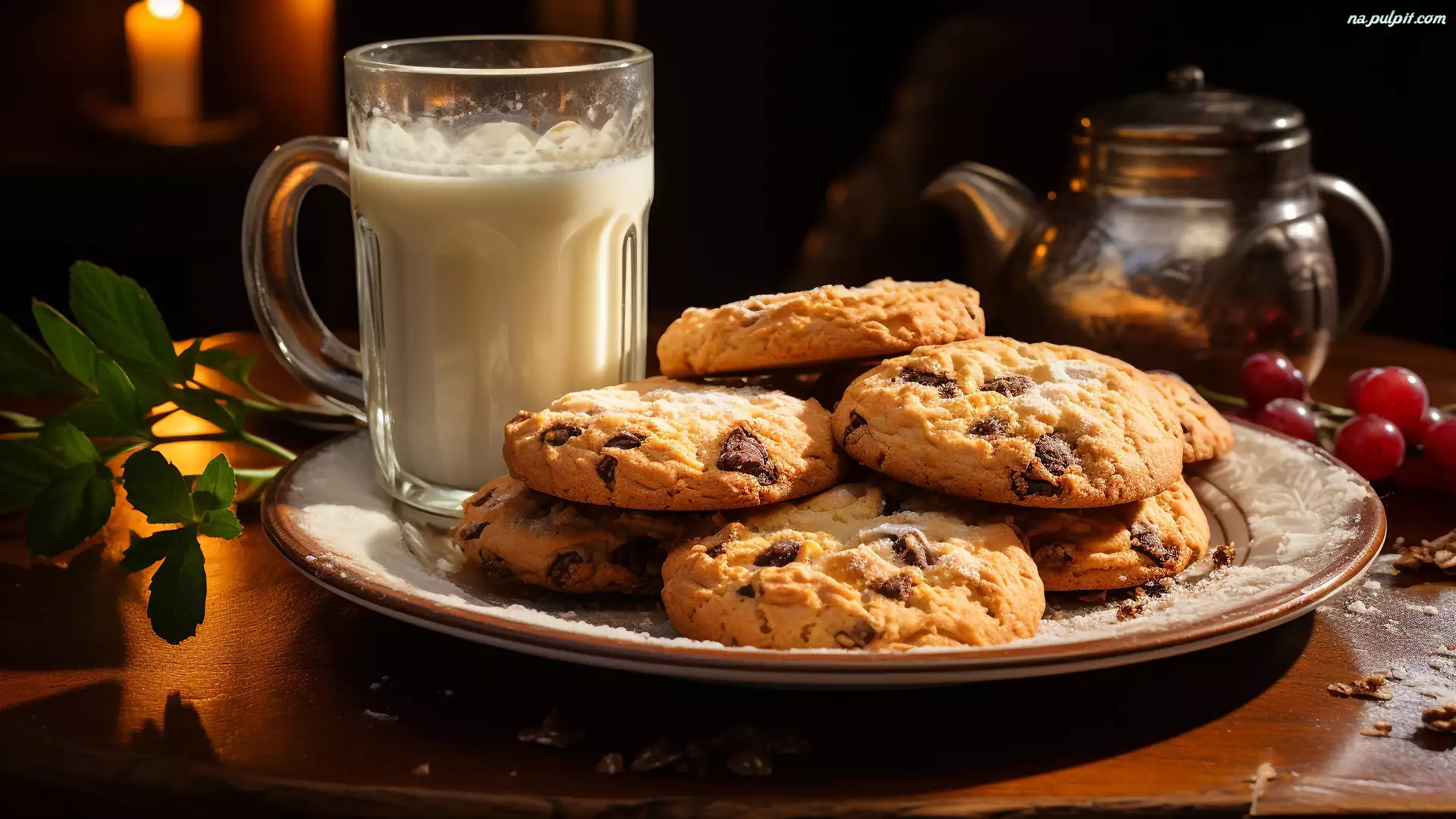 Kubek, Dzbanek, Ciasteczka, Talerzyk, Mleko