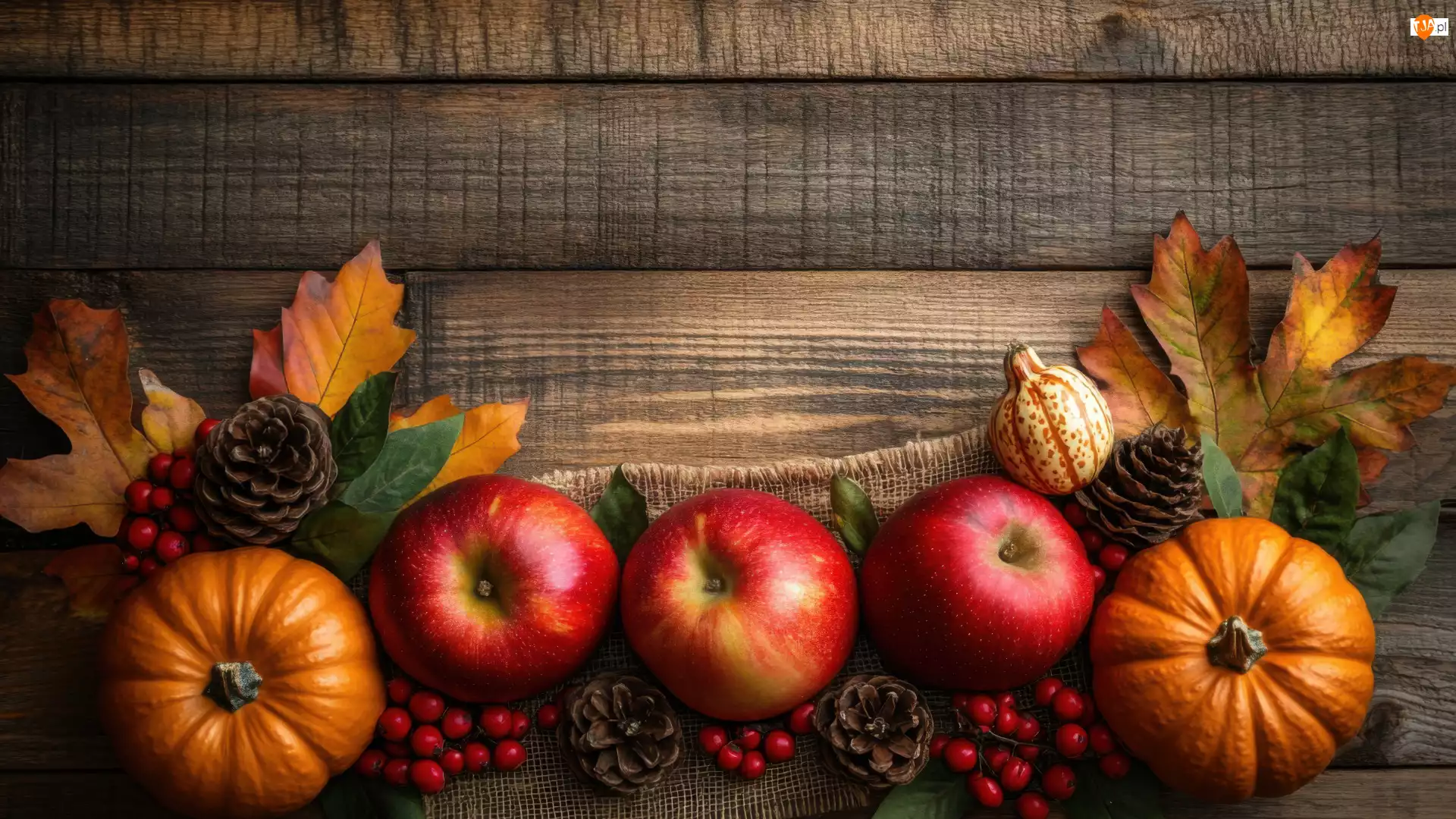 Deski, Liście, Jabłka, Grafika AI, Dynie, Szyszk