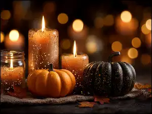 Grafika AI, Dynie, Świece, Bokeh