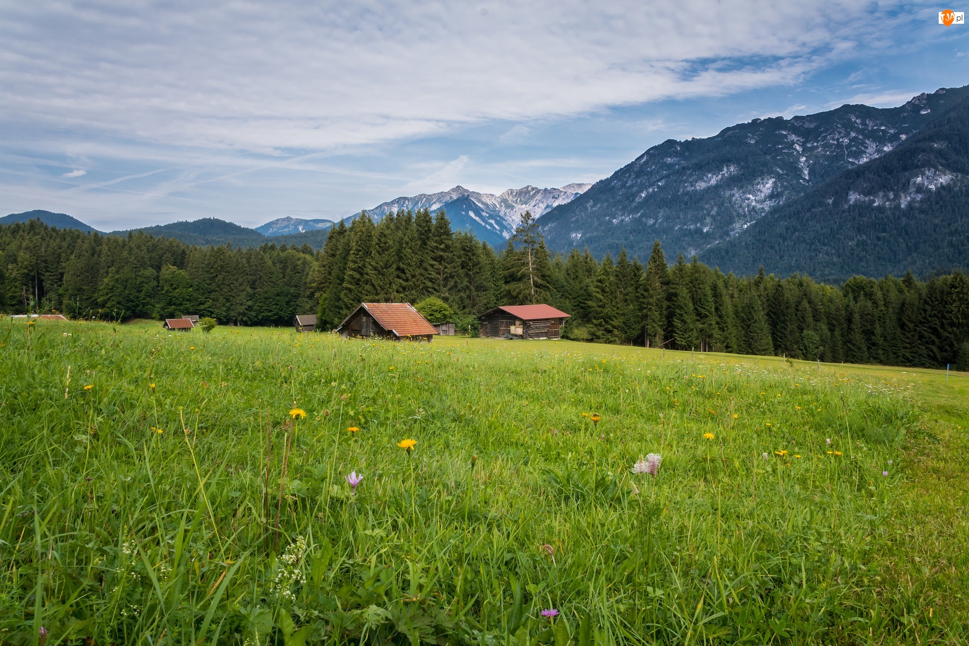 Domy pod lasem i na górskiej łące