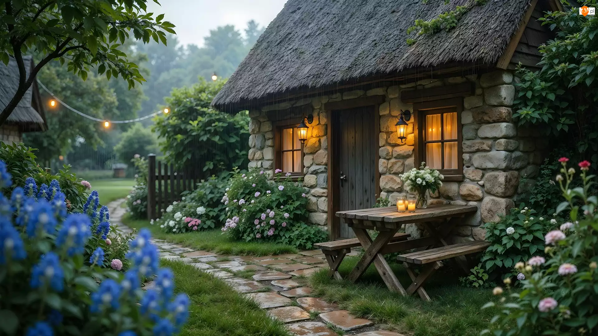 Deszcz, Kamienny, Dom, Ogród