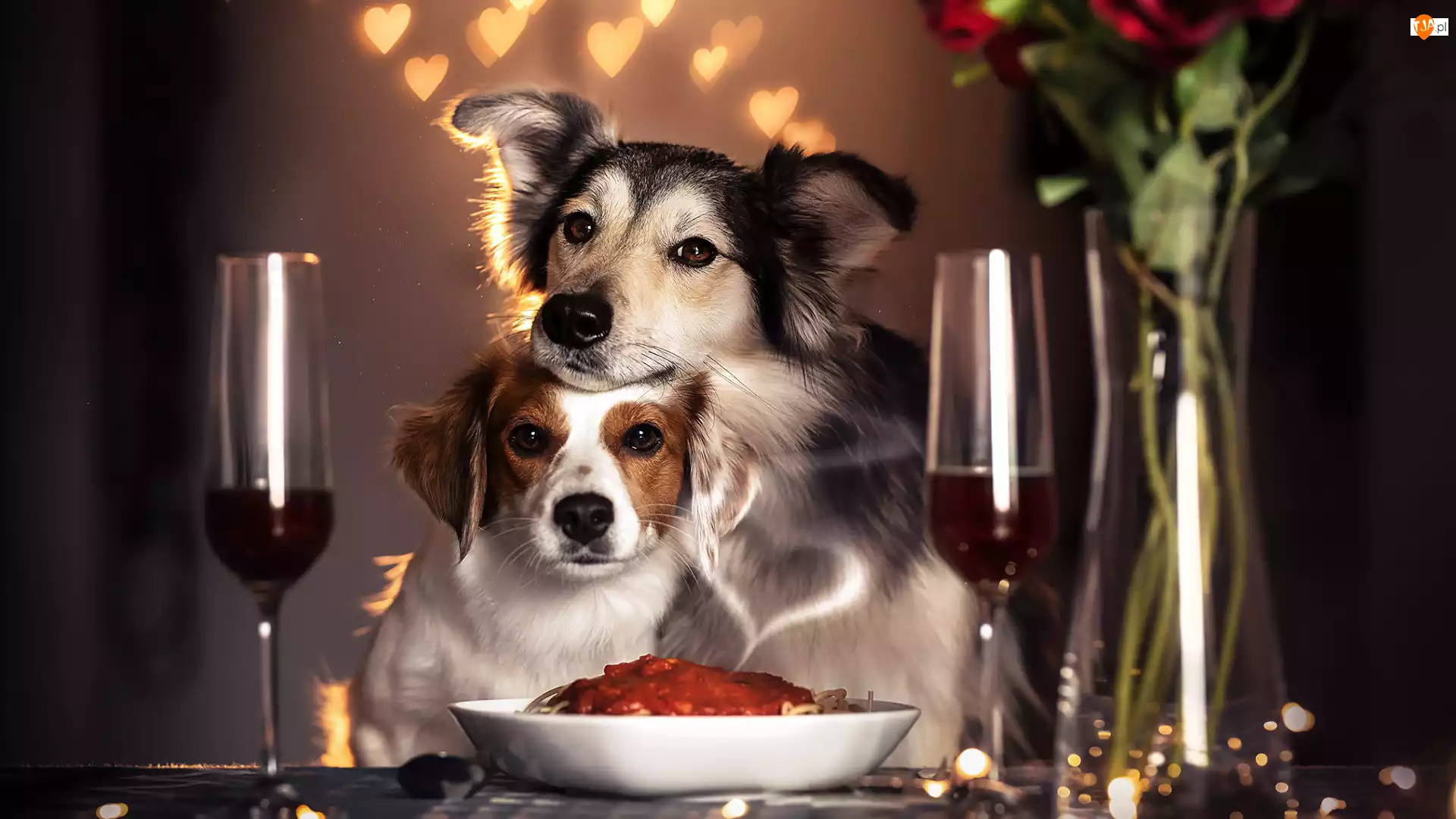 Przytulone, Psy, Serduszka, Dwa, Kieliszki, Jedzenie, Miska