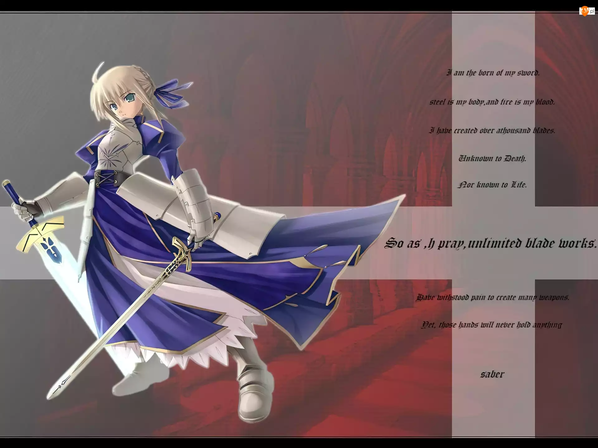 krzyż, Fate Stay Night, miecz, zbroja, dziewczyna, suknia