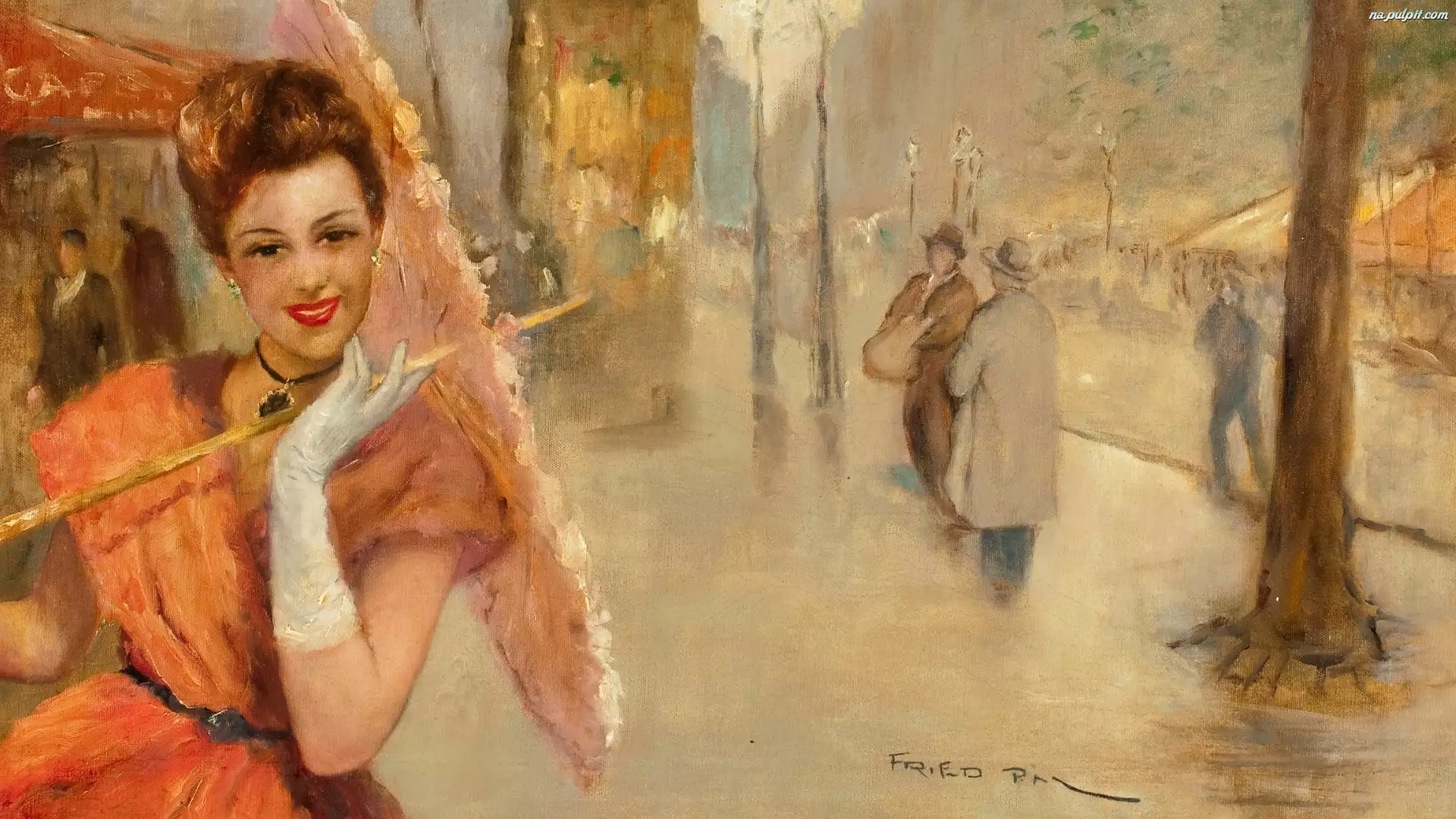 Pal Fried, Parasolka, Obraz, Malarstwo, Dziewczyna