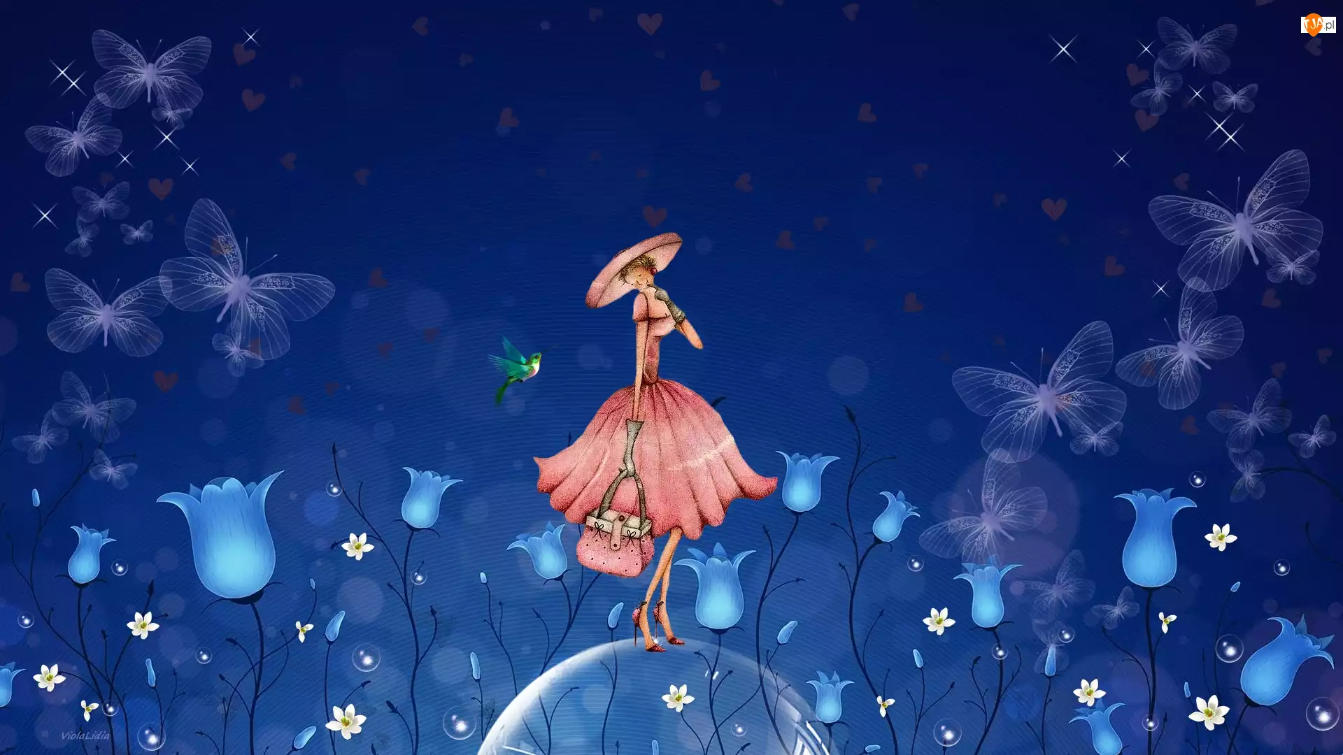 Ptak, Grafika 2D, Kobieta, Kwiaty