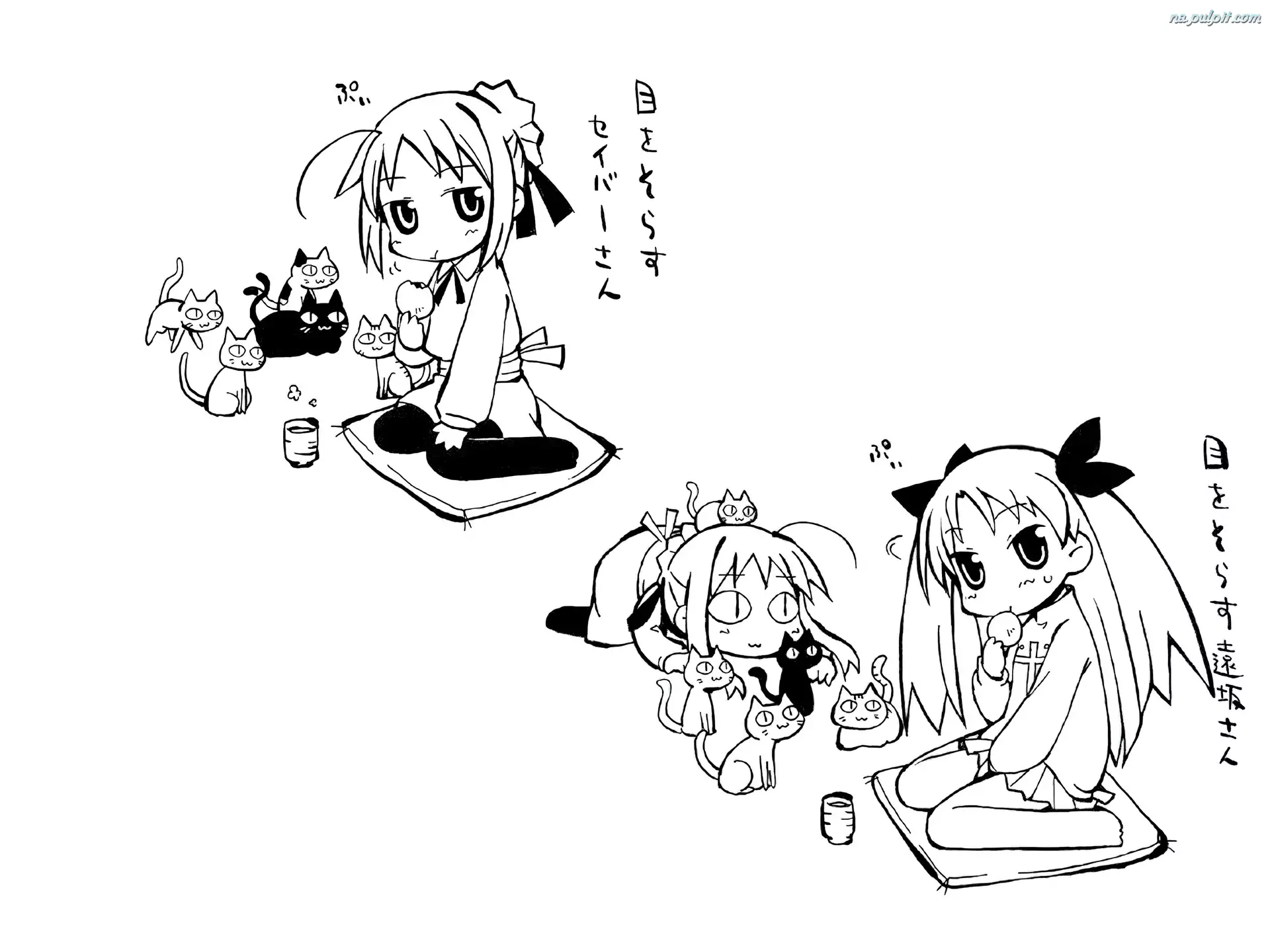 Fate Stay Night, rysunek, kotki, dziewczyny