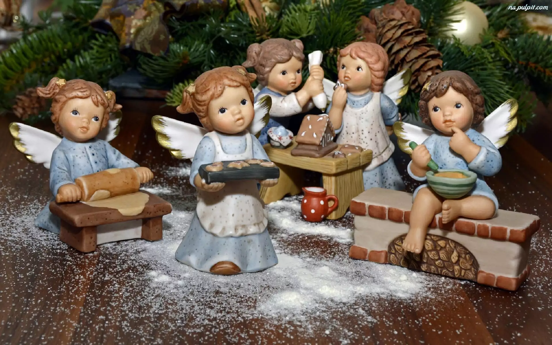 Figurki Aniołków podczas świątecznych wypiekó
