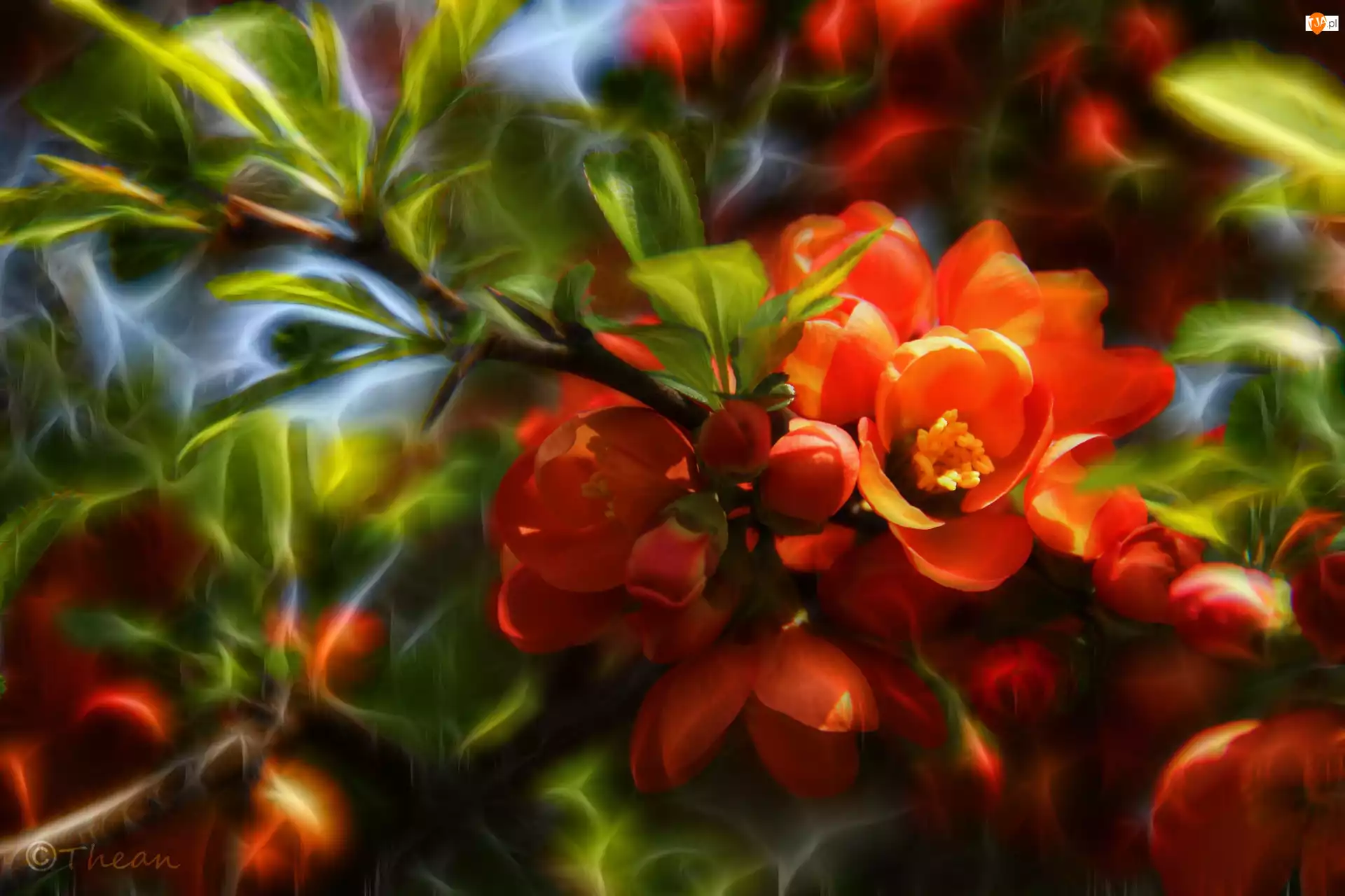 Kwiaty, Fractalius, Czerwone, Pigwa, Krzew