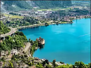 Montreux, Z lotu ptaka, Zamek Chillon, Jezioro Genewskie, Sz