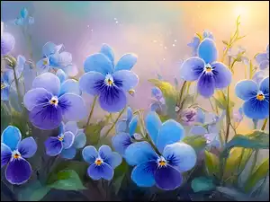 Grafika AI, Niebieskie, Bratki, Kwiaty