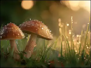 Borowiki, Brązowe, AI, Podgrzybki, Grafika, Trawa, Grzyby