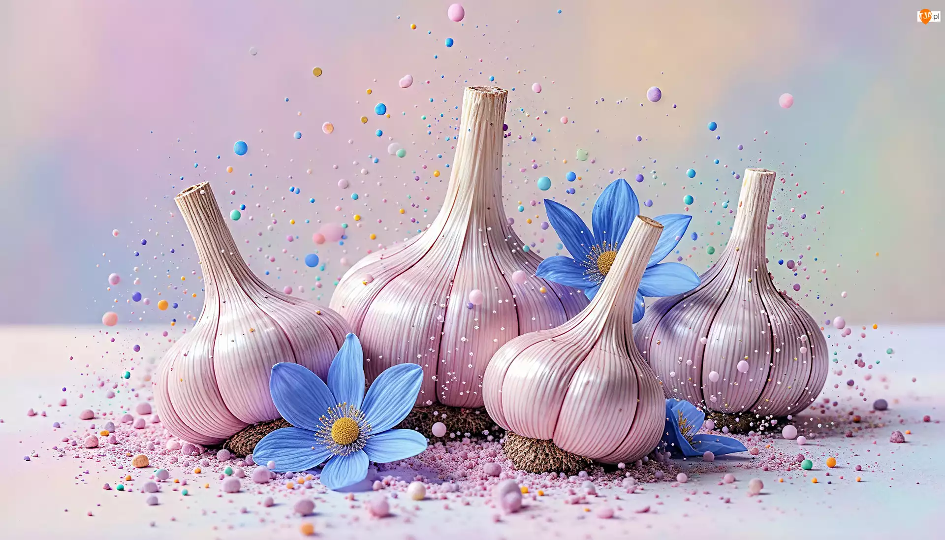 Grafika AI, Czosnek, Niebieskie, Kwiaty