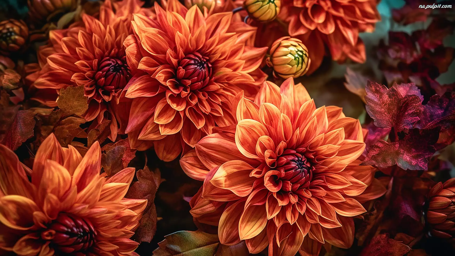 Grafika komputerowa, Kwiaty, Dalie, Zbliżenie