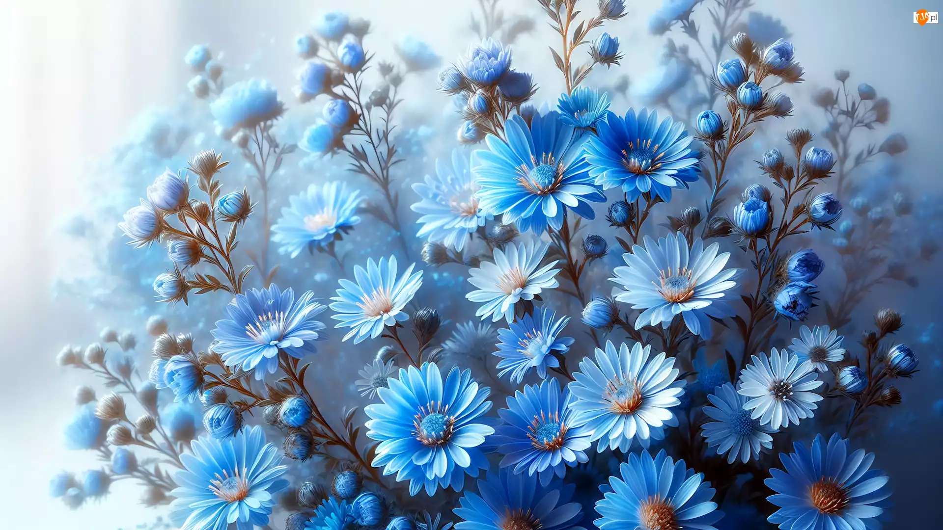 Grafika, Rozwinięte, Kwiaty, Niebieskie