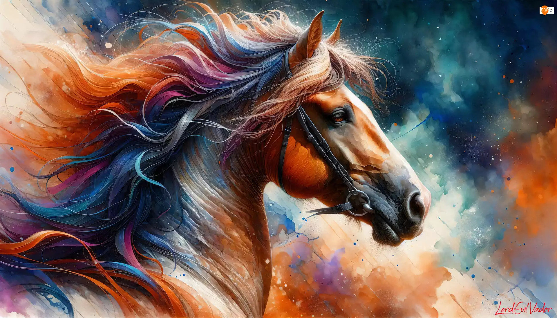 Grzywa, Rozwiana, Koń, Grafika, Kolorowa