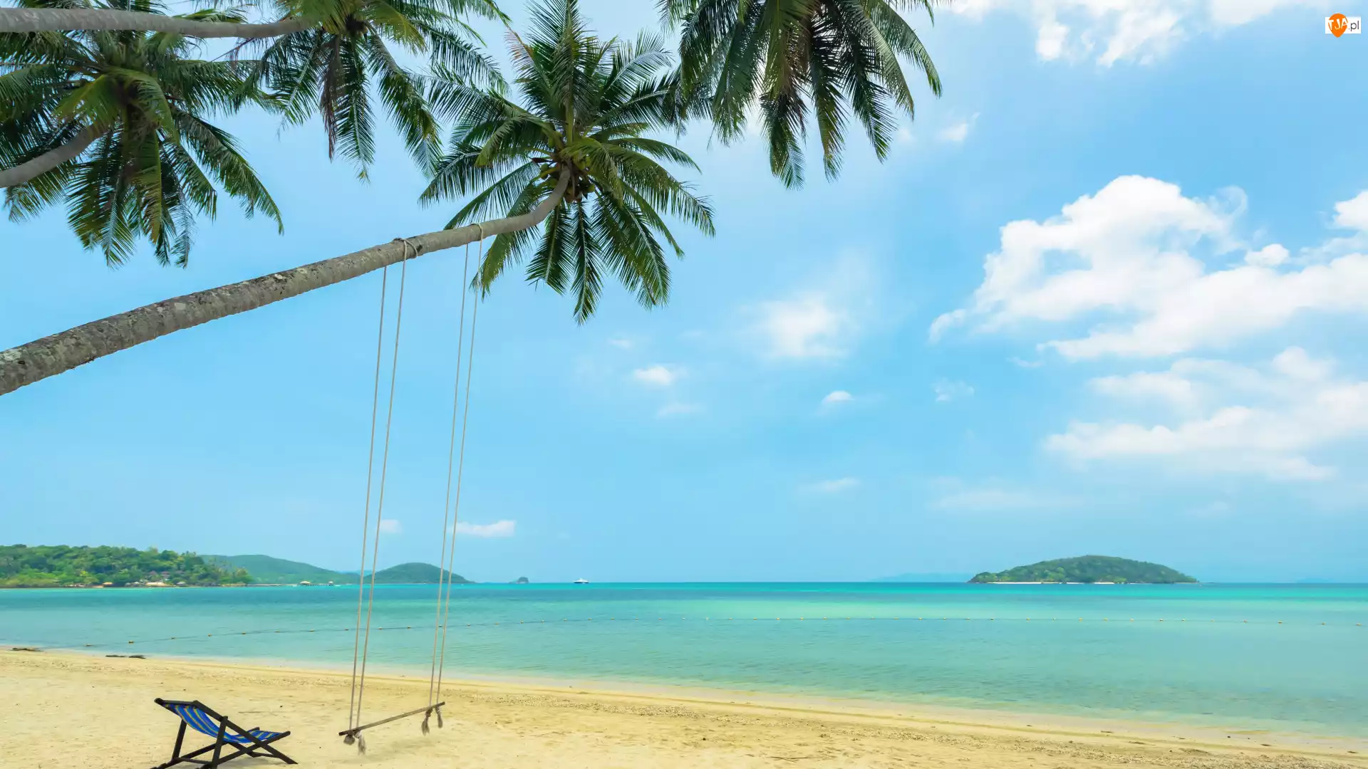 Huśtawka, Leżak, Morze, Plaża, Palmy