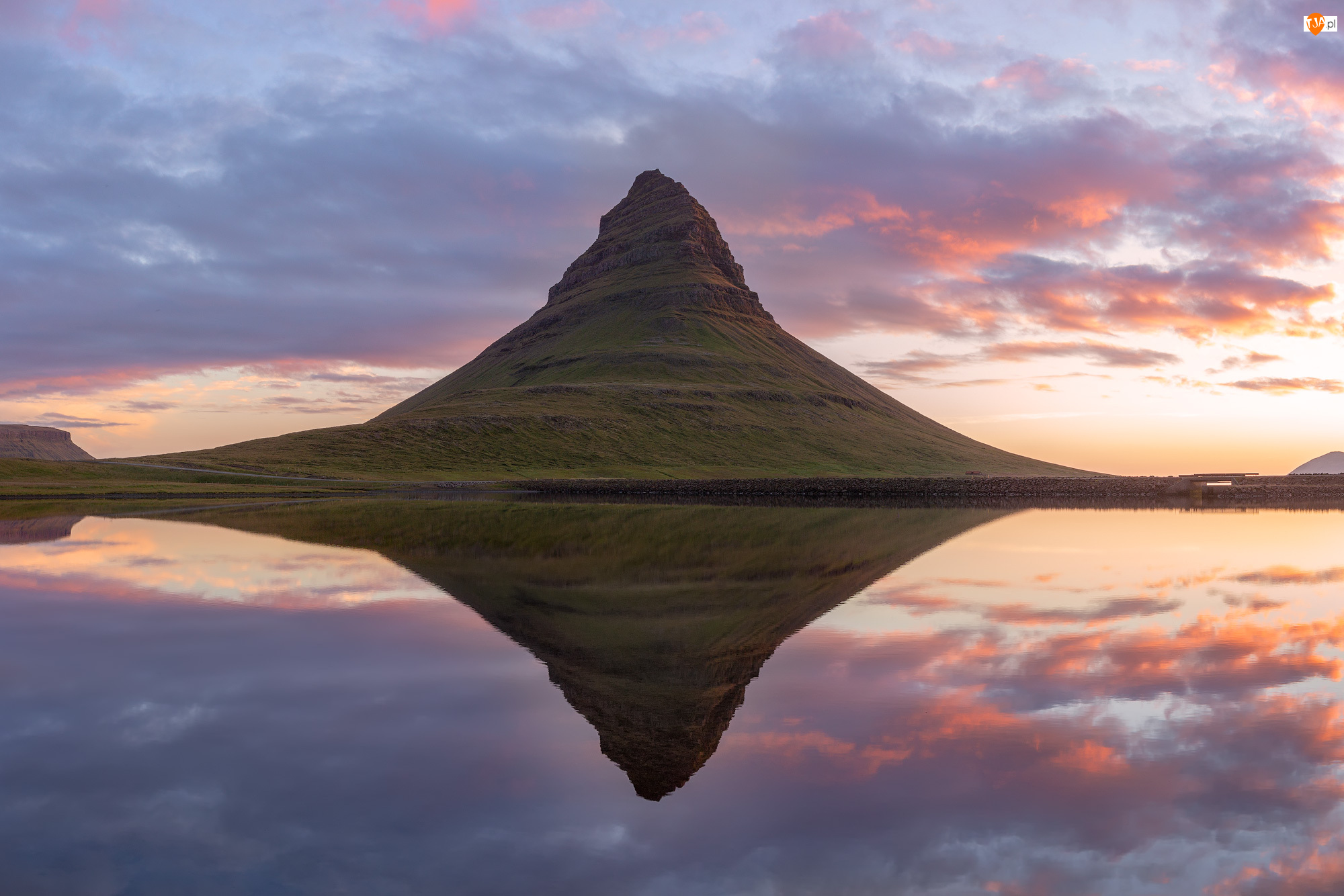 Islandia, Góra Kirkjufell, Rzeka, Odbicie