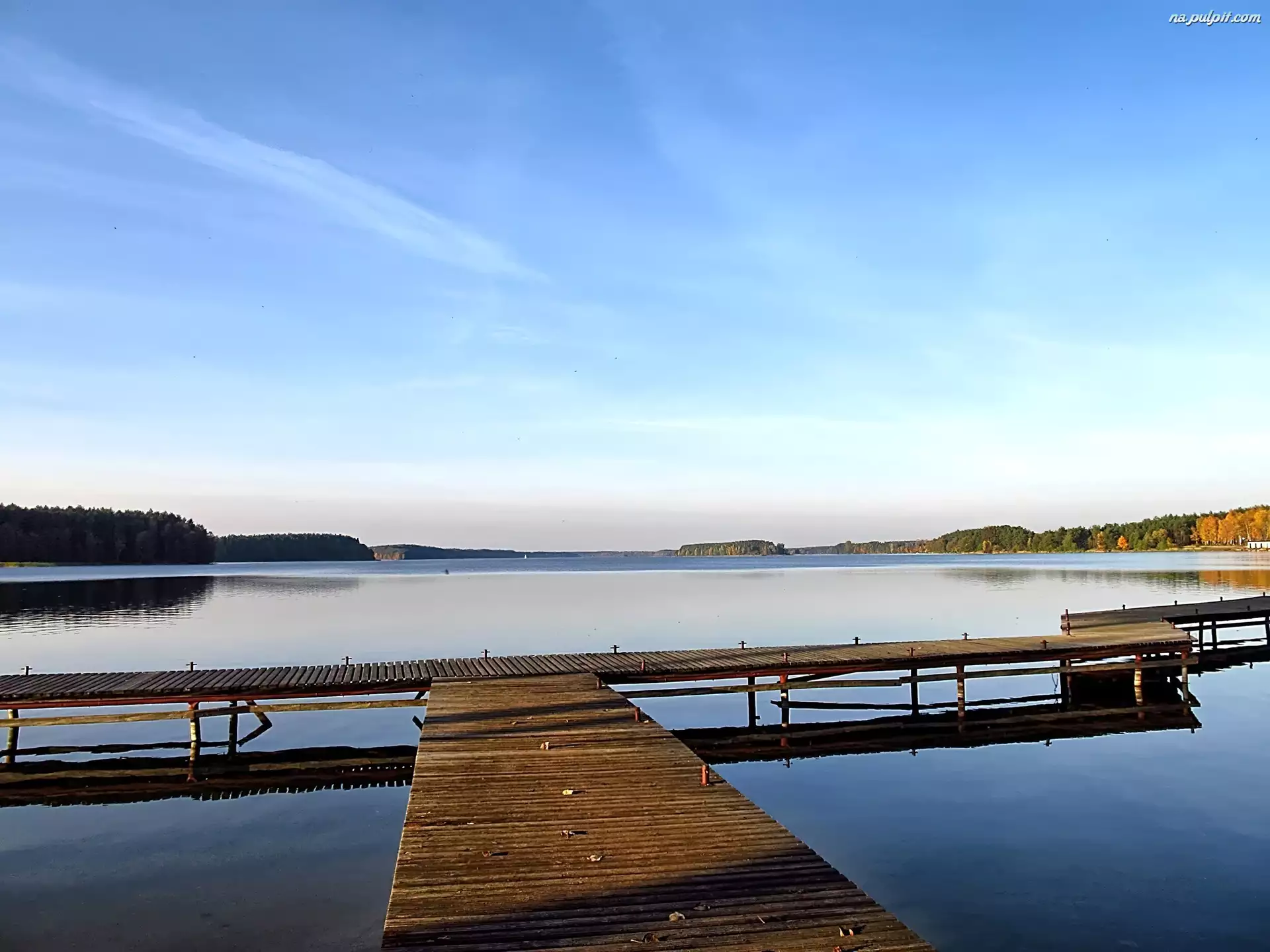 Jesień, Drzewa, Jezioro, Pomost, Wyspy, Lasy