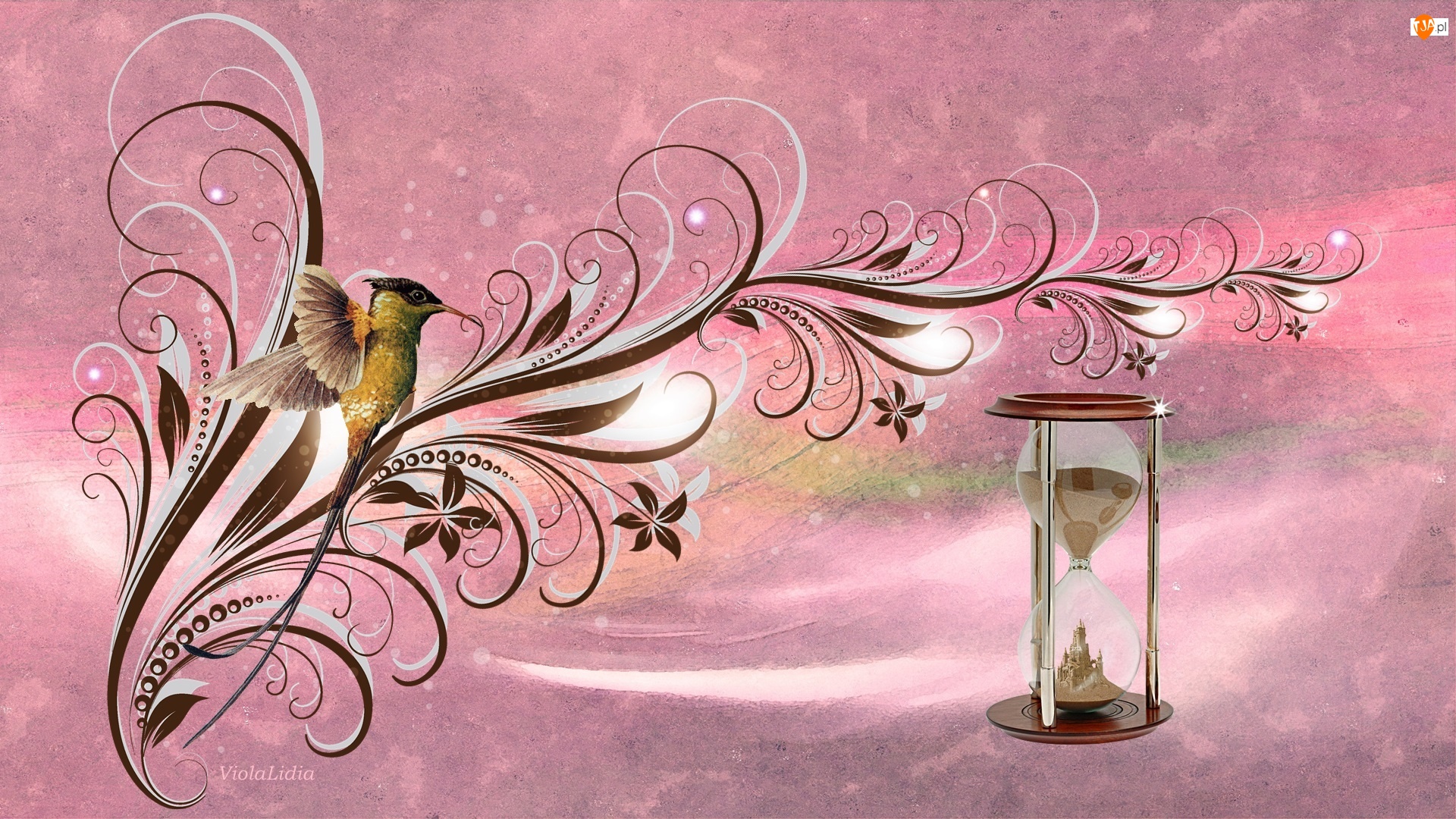 Klepsydra, Ptak, Kompozycja, Grafika, Rajski