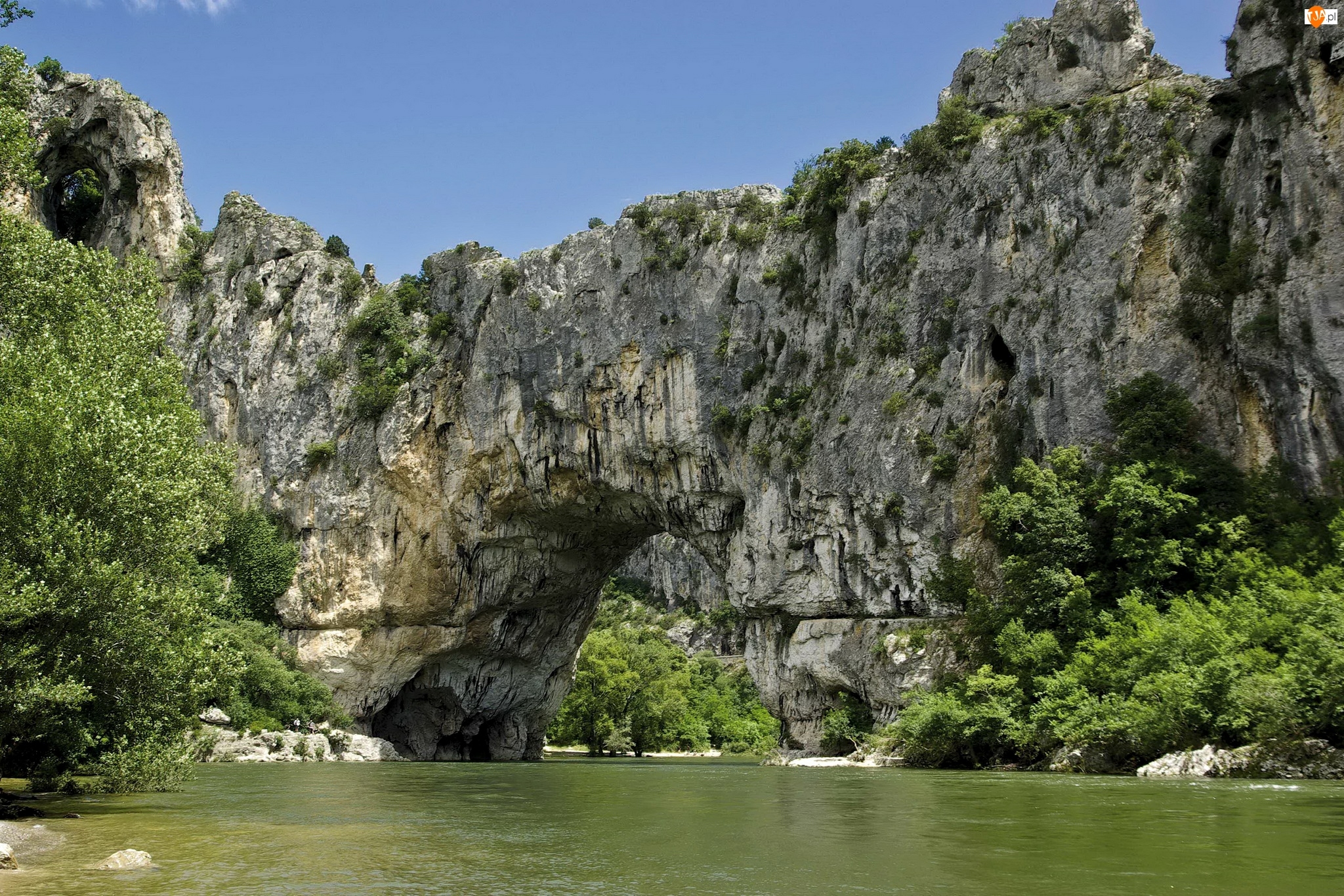 Krzewy, Góry, Klif, Drzewa, Rzeka
