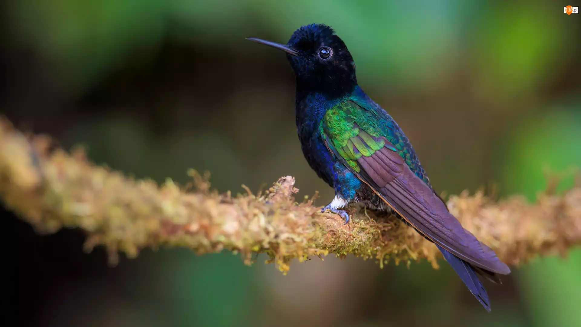 Koliber, Gałązka, Ptak, Kolorowy, Amorek szafirowy