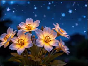 Niebo, AI, Kwiaty, Podświetlone, Gwiazdy