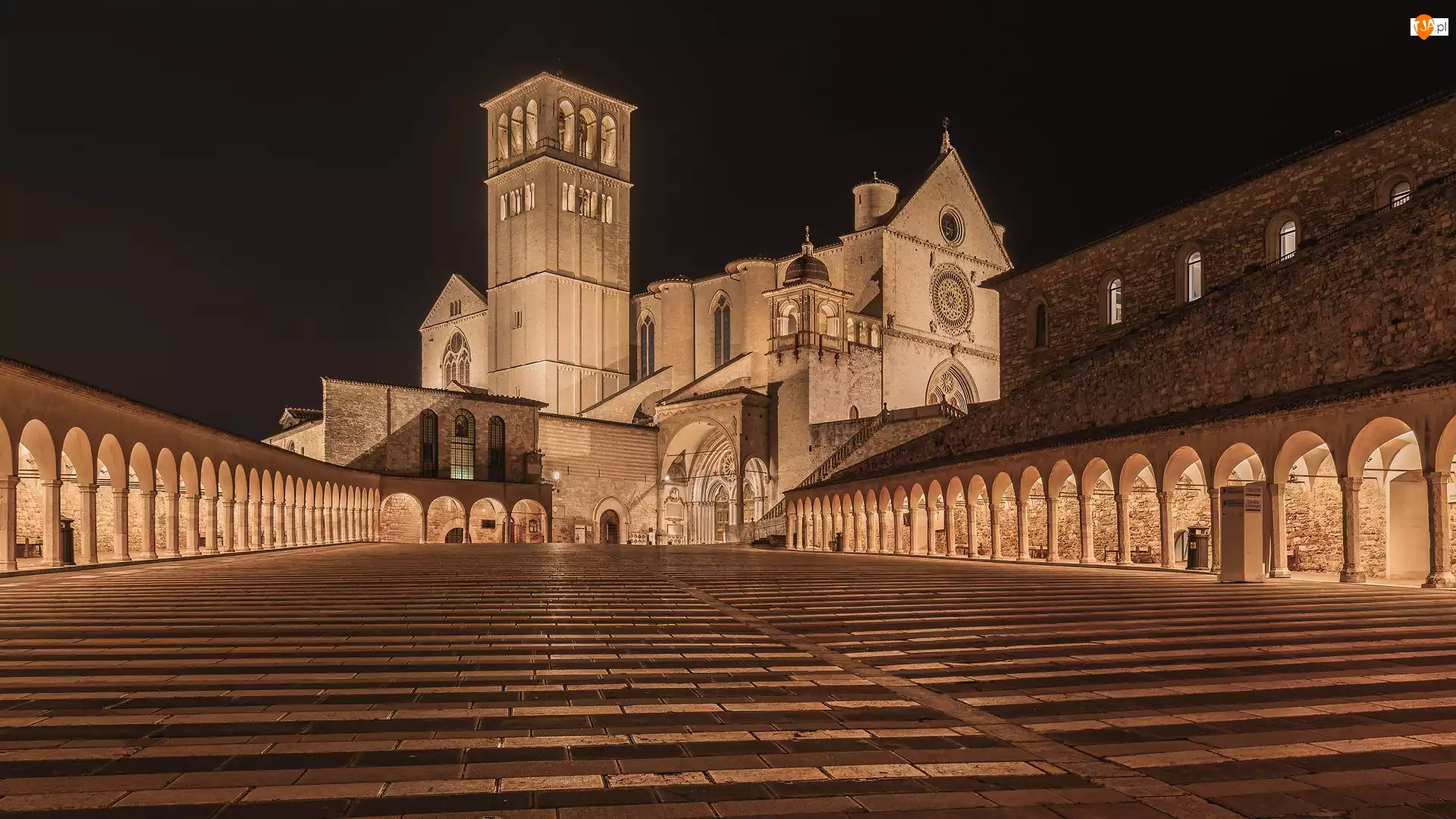 Kościół św. Franciszka w Asyżu nocą