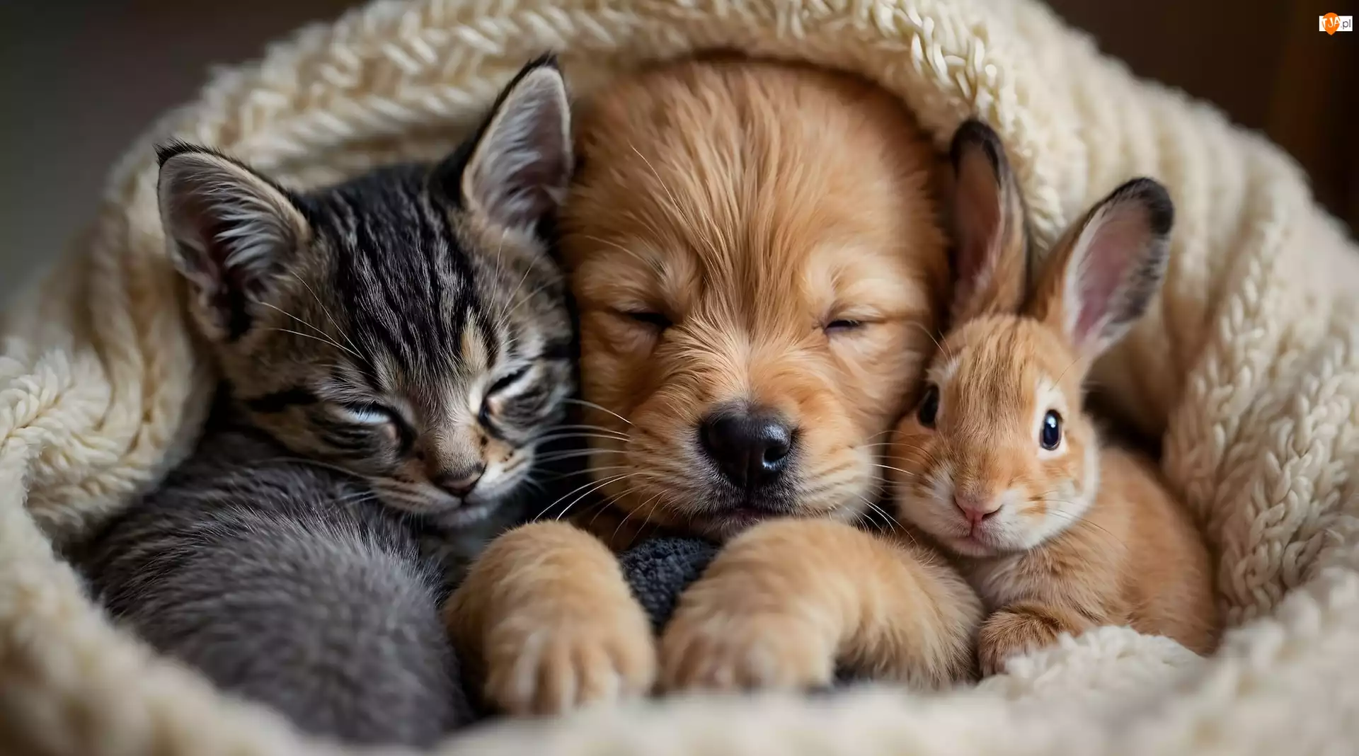 Kot, Grafika, Królik, Koc, Szczeniak, Sen