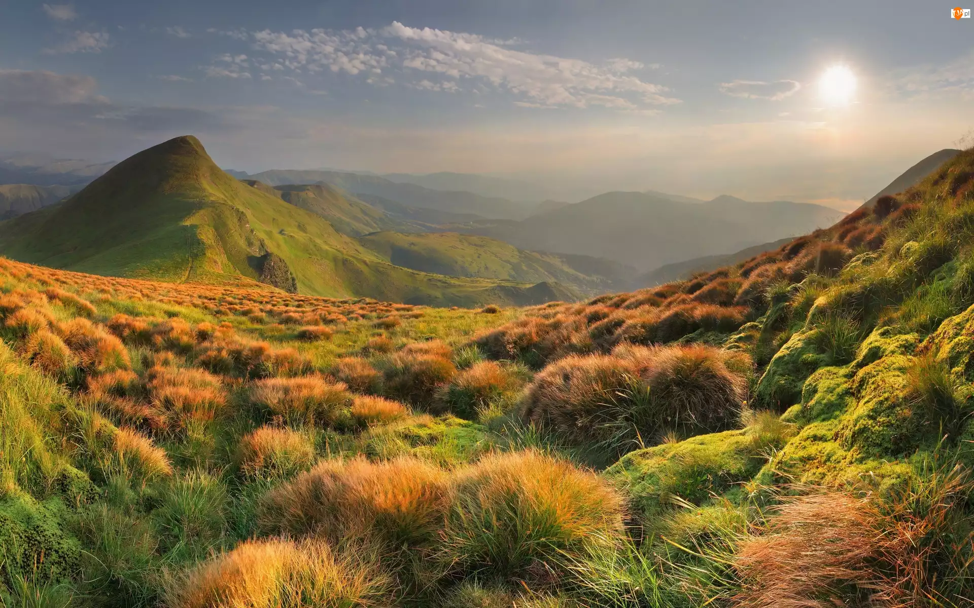 Krajobraz, Słońce, Góry, Trawy