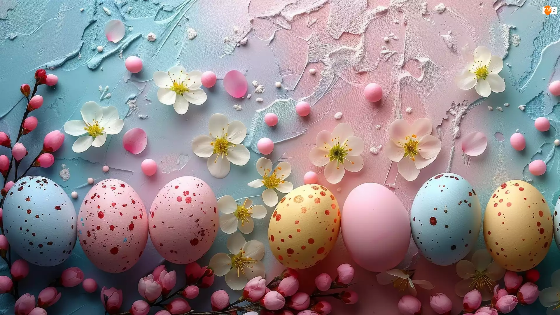 Kropkowane, Pisanki, Kwiatki, Wielkanoc, Białe, Pąki, Różowe
