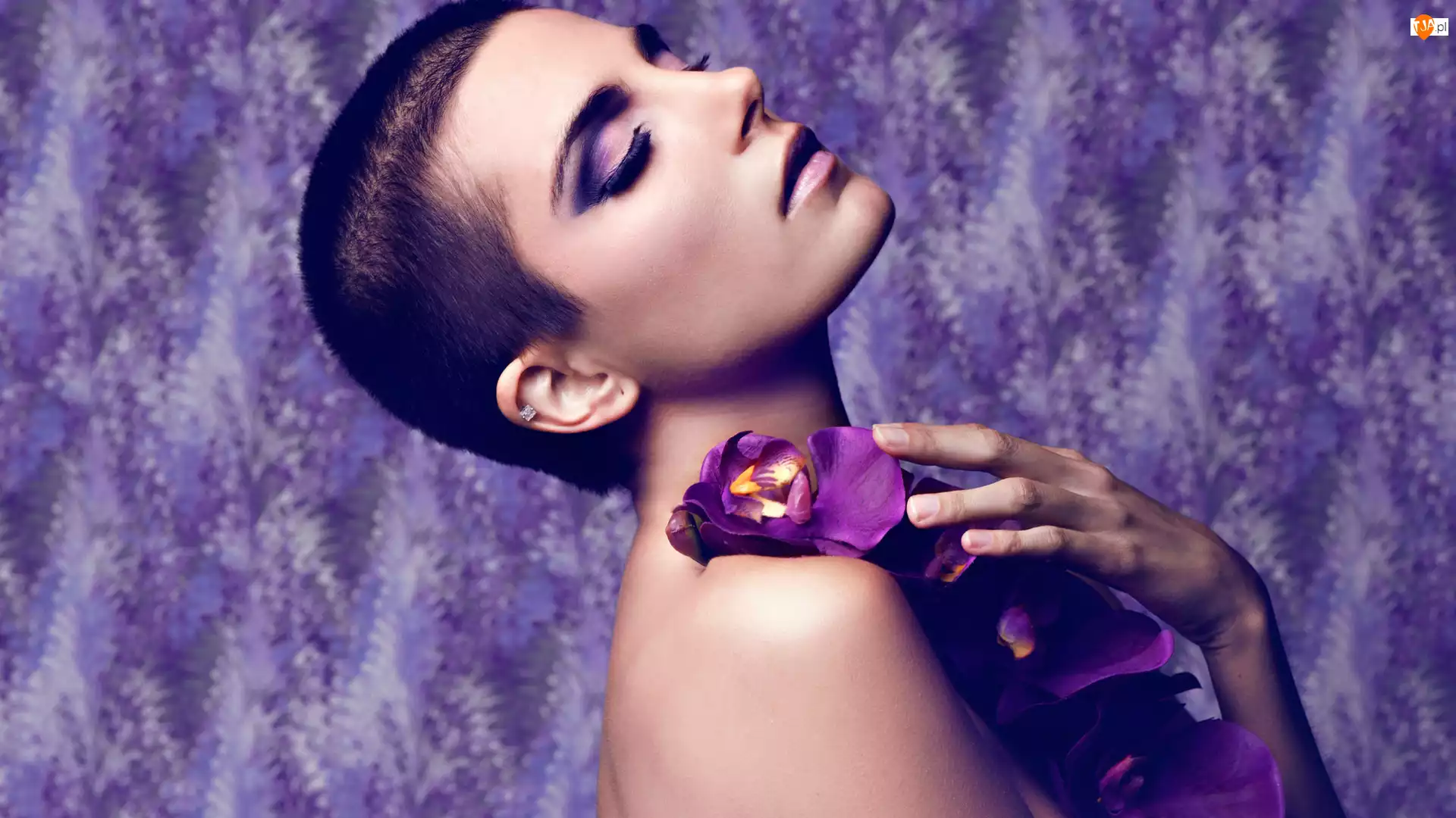 Krótkie, Dziewczyna, Storczyk, Tło, Włosy, Fioletowe