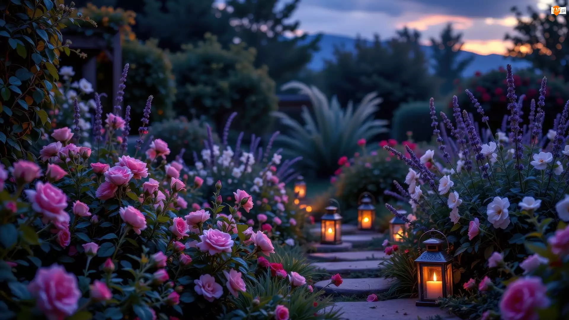 Kwiaty, Różowe, Lampiony, Ogród, Ozdobne, Rośliny, Róże