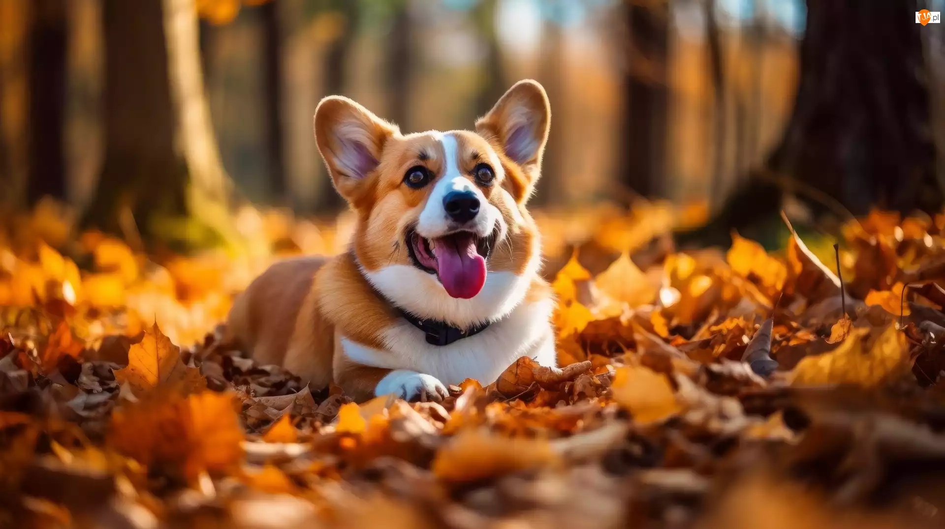 Liście, Grafika, Pies, Welsh corgi pembroke, Jesi