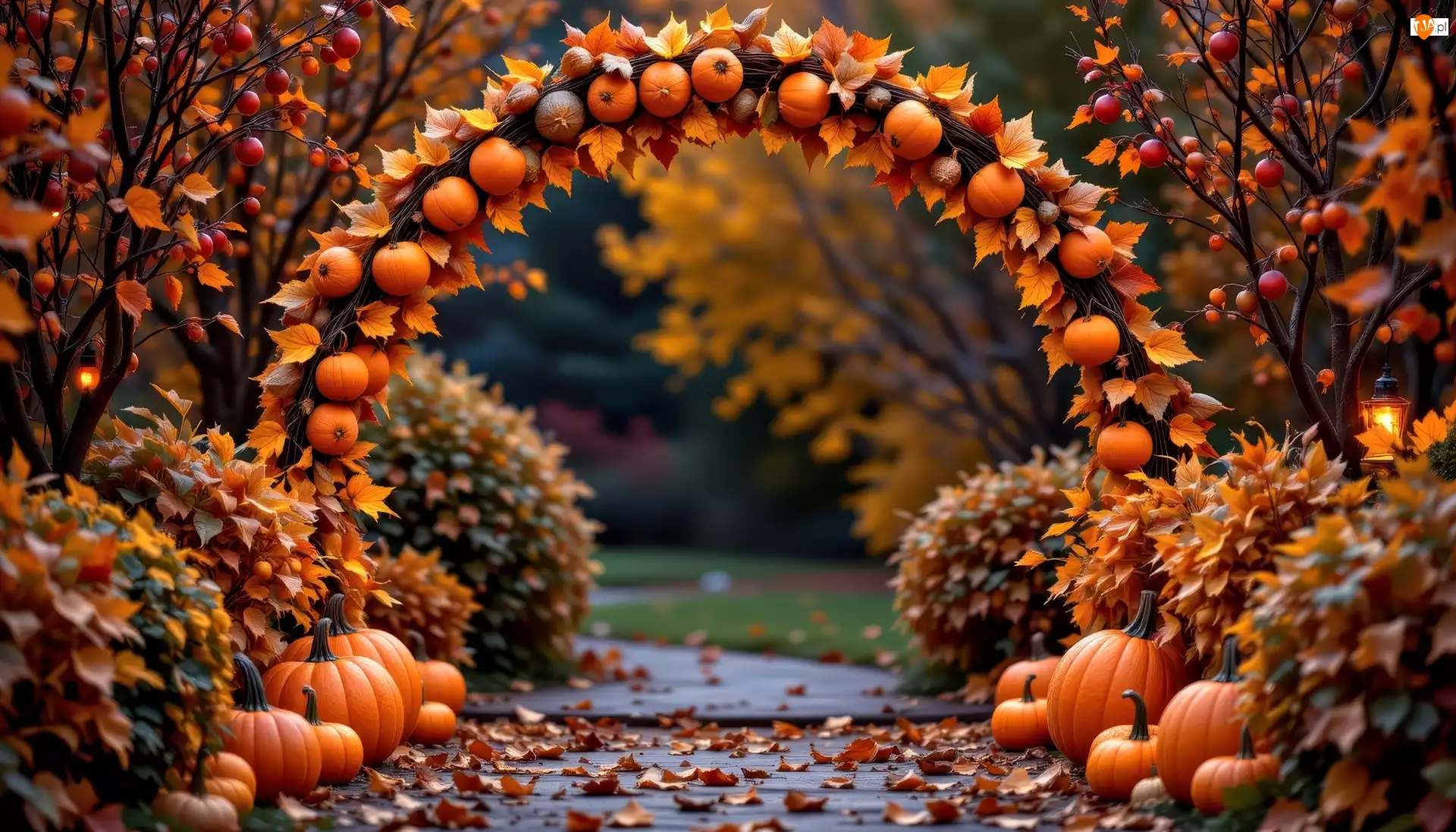 Łuk, Dynie, Krzewy, Grafika AI, Liście, Jesień