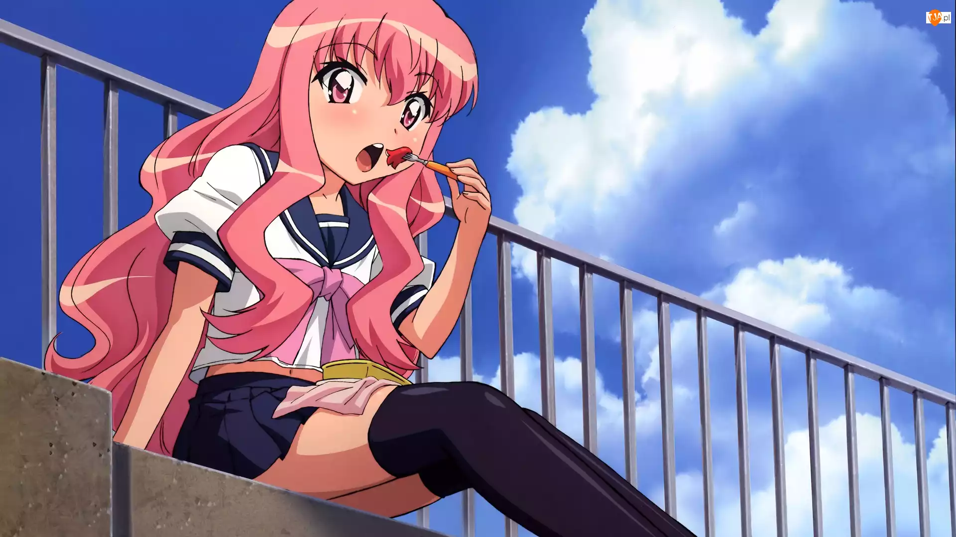 Manga, Barierka, Widelec, Dziewczyna, Anime, Jedzenie, Niebo