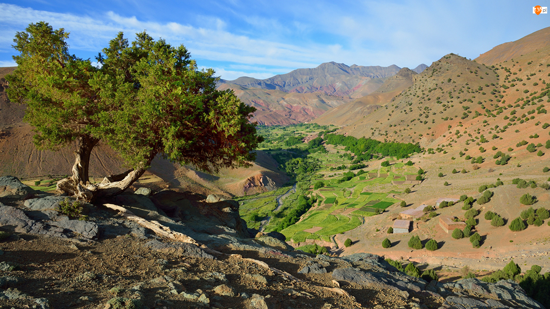 Maroko, Afryka, Dolina, Kamienie, Góry Atlas, Drzewa