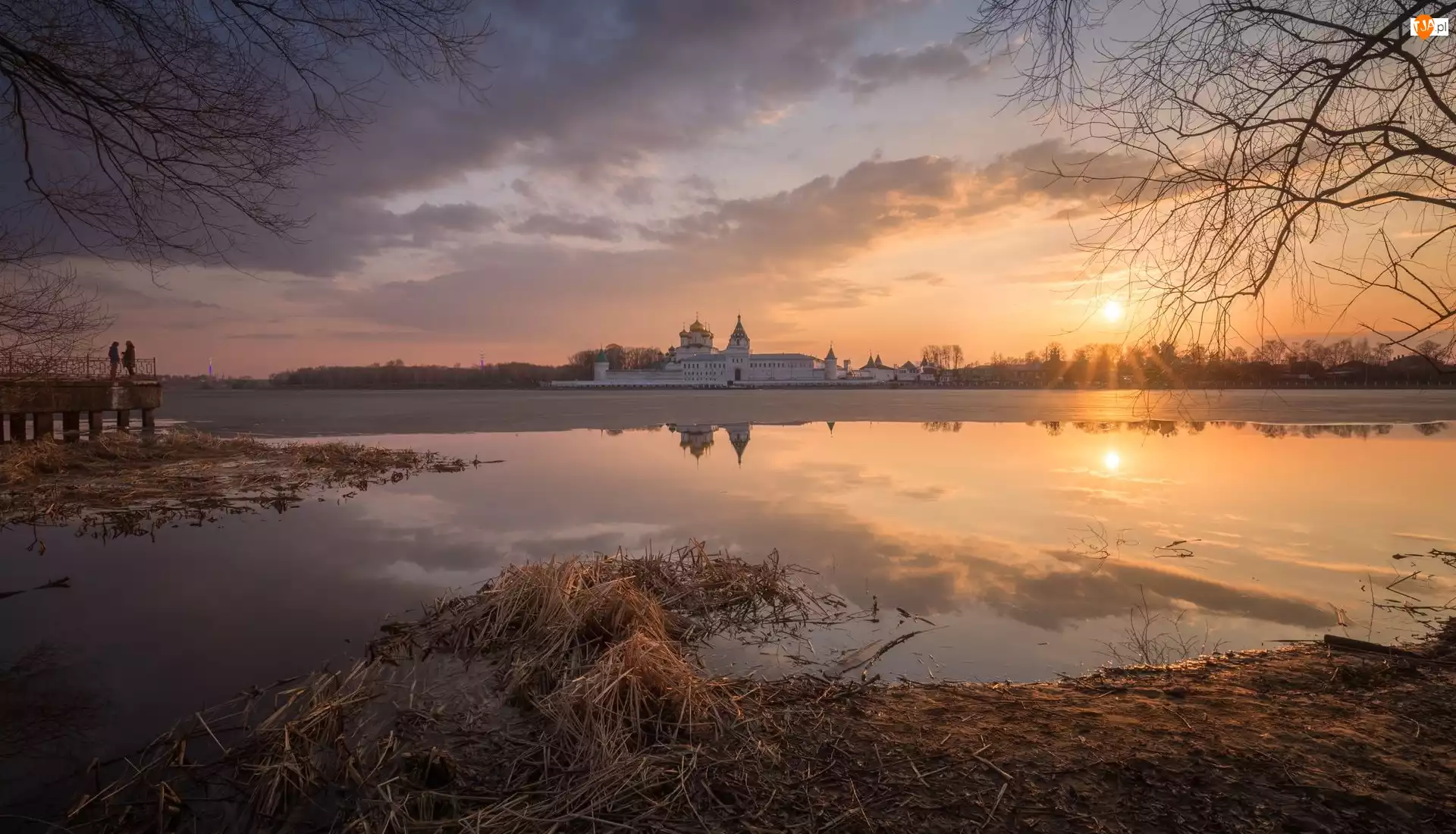 Monaster Ipatiewski, Klasztor, Zachód słońca, Rosja, Rzeka Kostroma, Kostroma