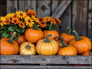 Grafika AI, Dynie, Kwiaty, Skrzynka