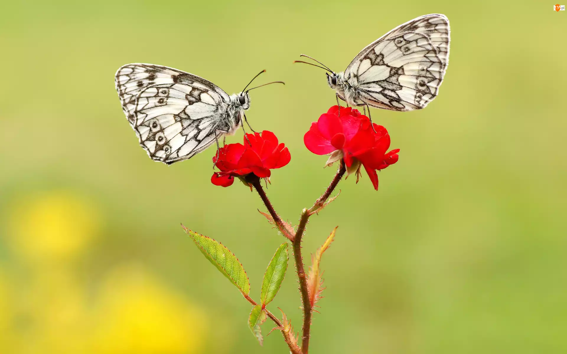 Motyle, Dwa, Czerwone, Róże, Polowiec szachownic