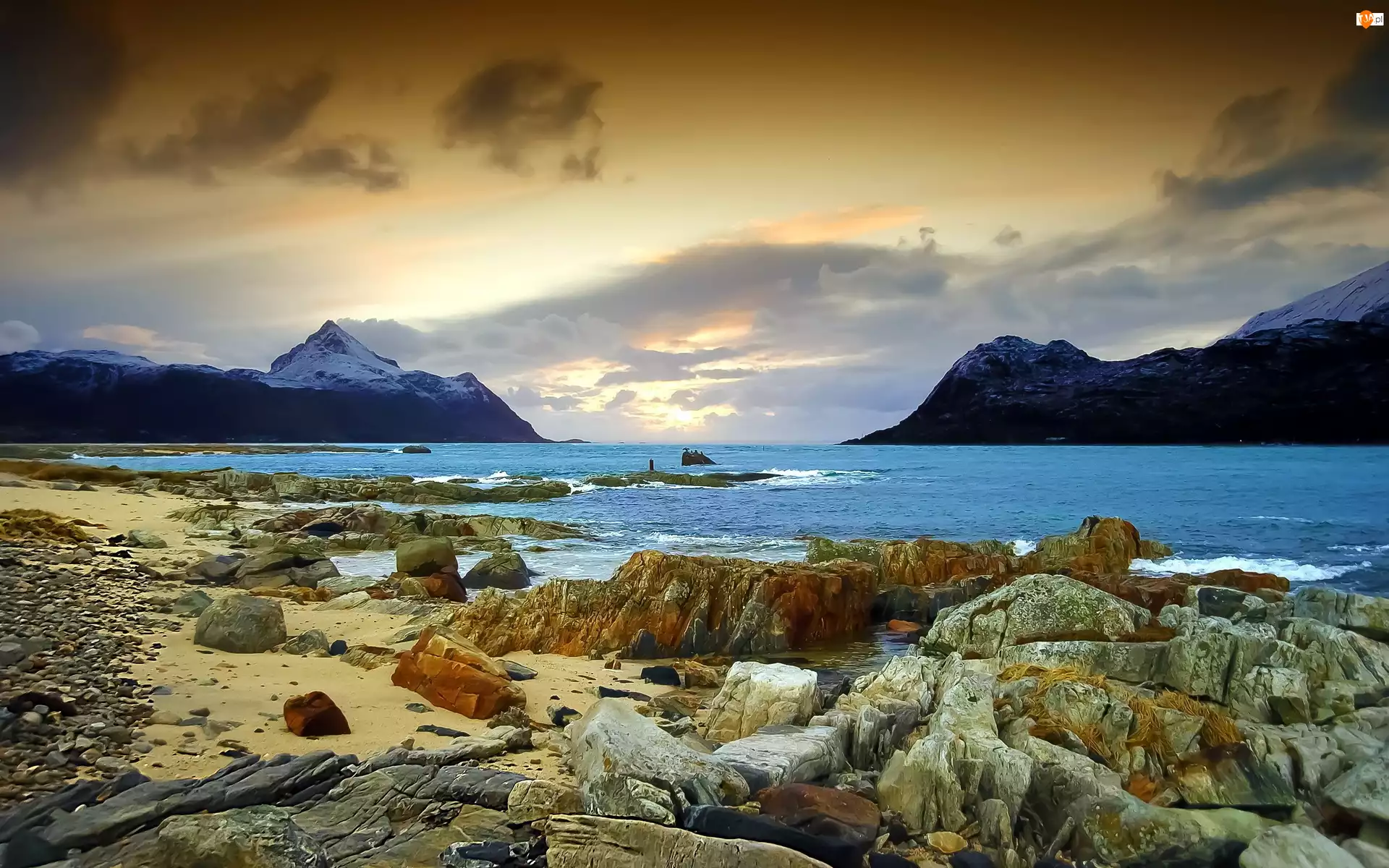 Niebo, Góry, Kamienie, Woda, Zachmurzone