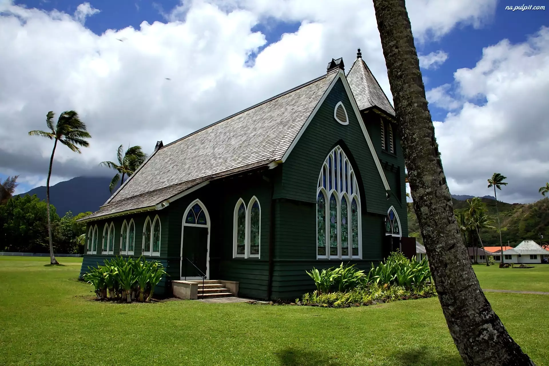 Obłoki, Wyspa, Kościółek, Kauai, Palmy