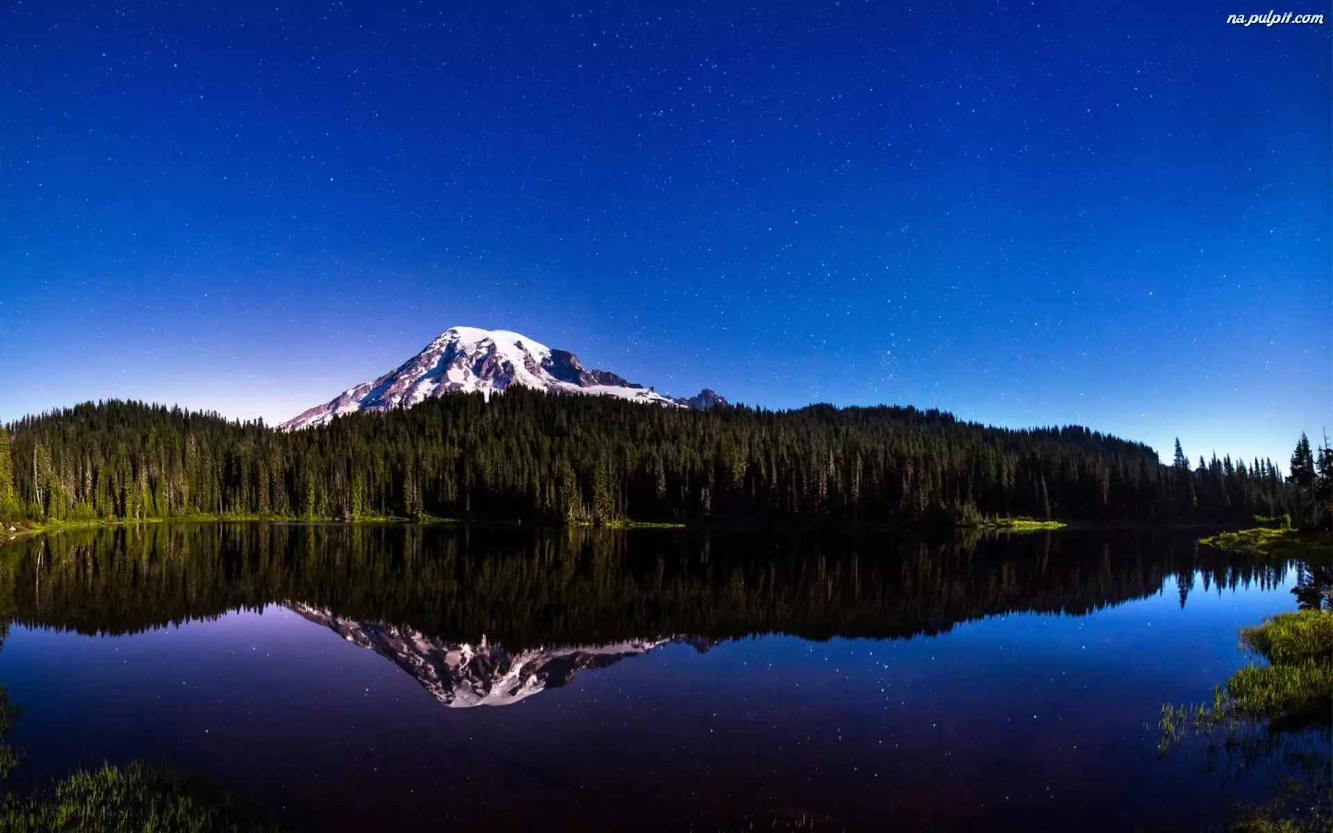 Odbicie, Góry, Jezioro, Lasy, Gwieździste