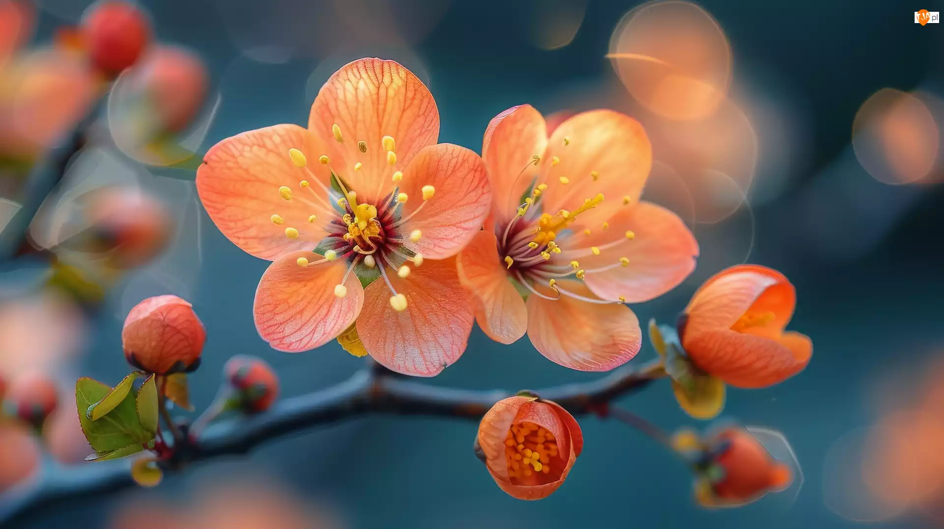 Pąki, Gałązka, Pomarańczowe, Kwiaty