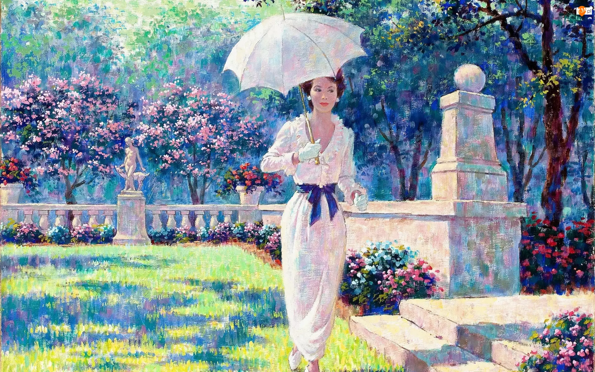 Parasolka, Obraz, Kobieta, Arthur Saron Sarnoff, Ogród