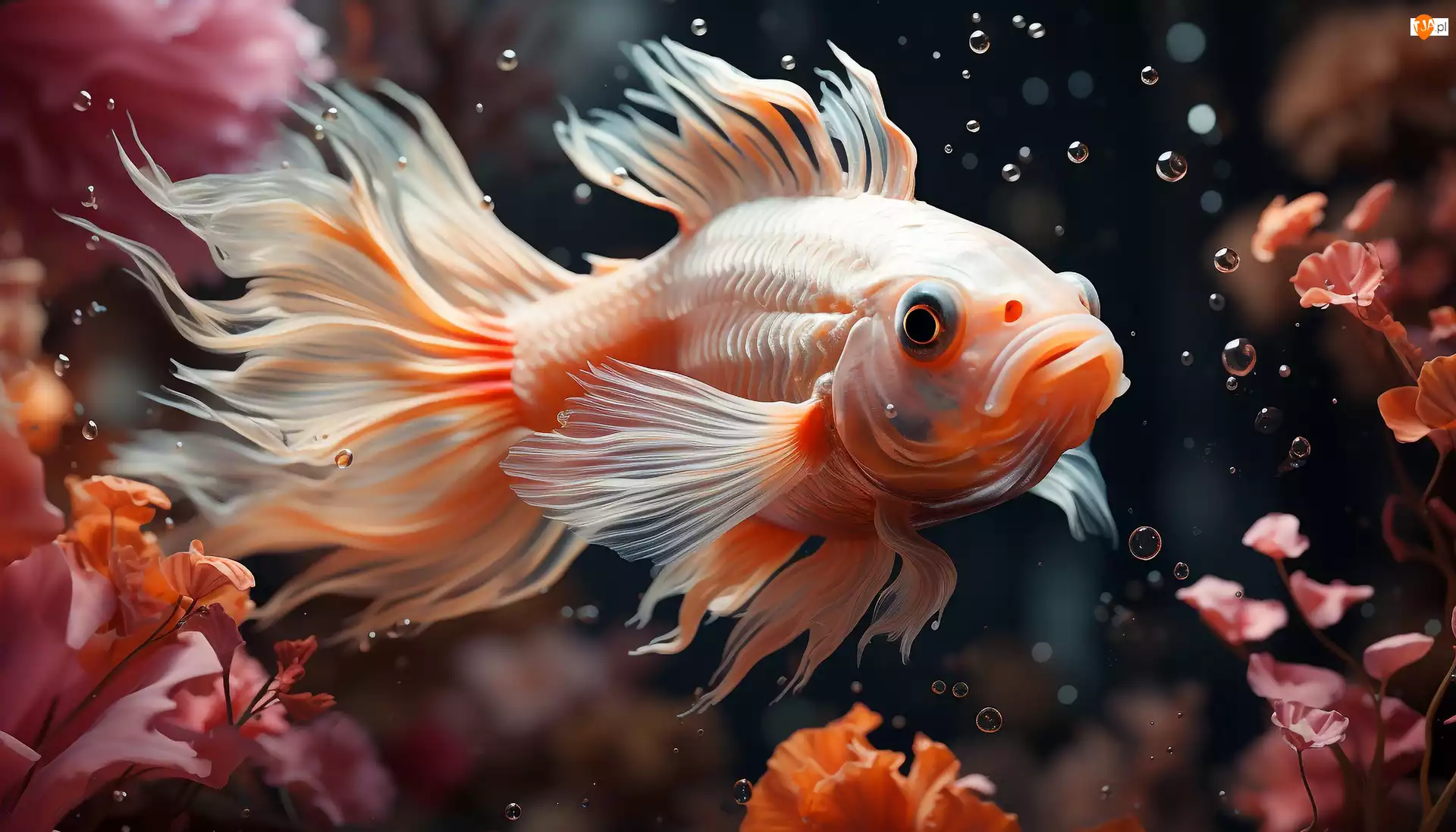 Płetwy, Grafika, Welonka, Ryba, Rośliny