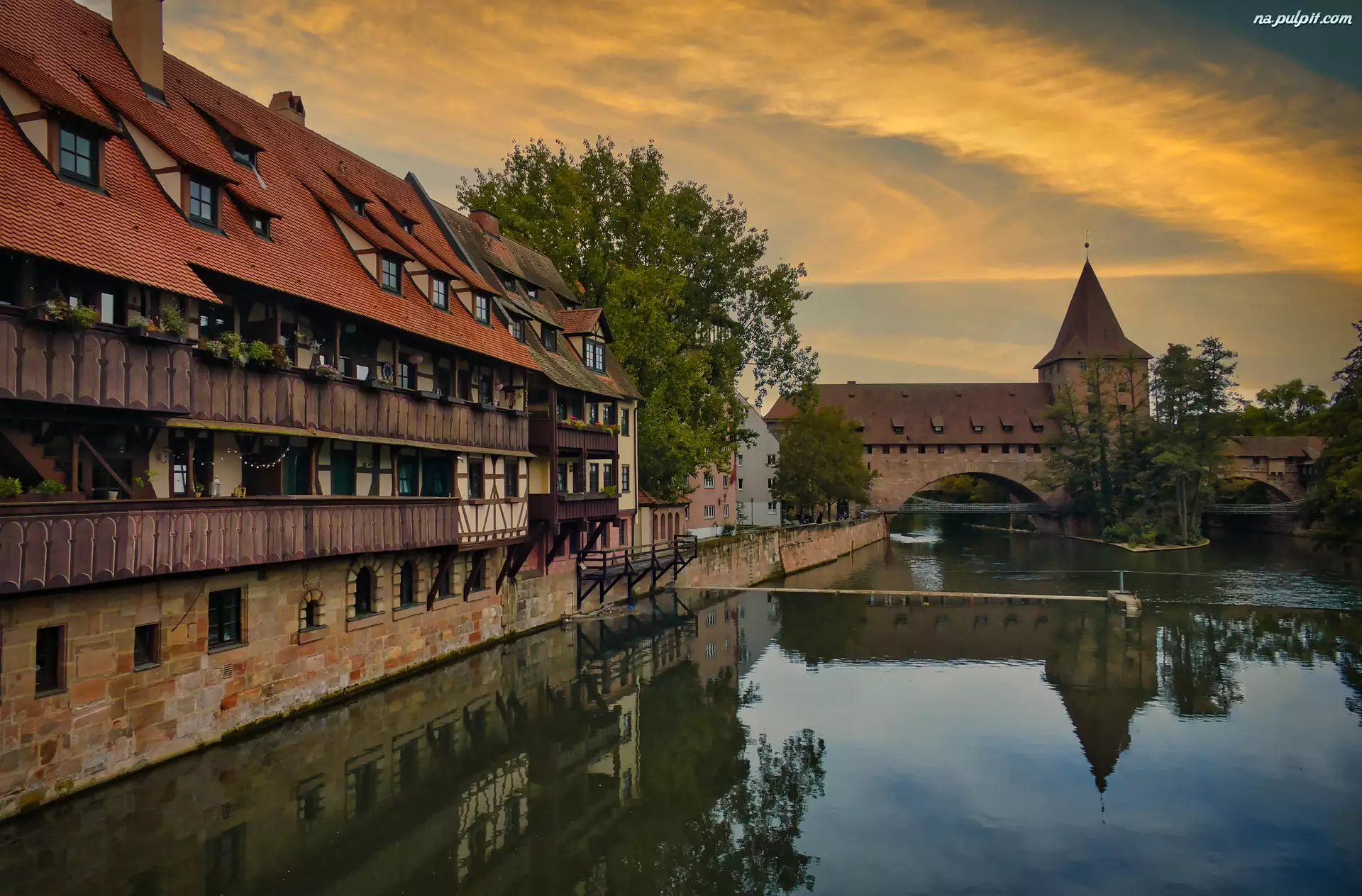Niemcy, Rzeka Pegnitz, Domy, Norymberga